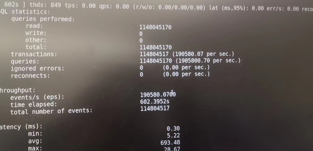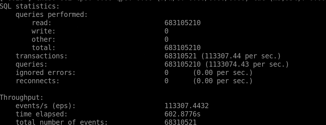 BIOS参数优化后读场景测试数据QPS为1133074.43/s。