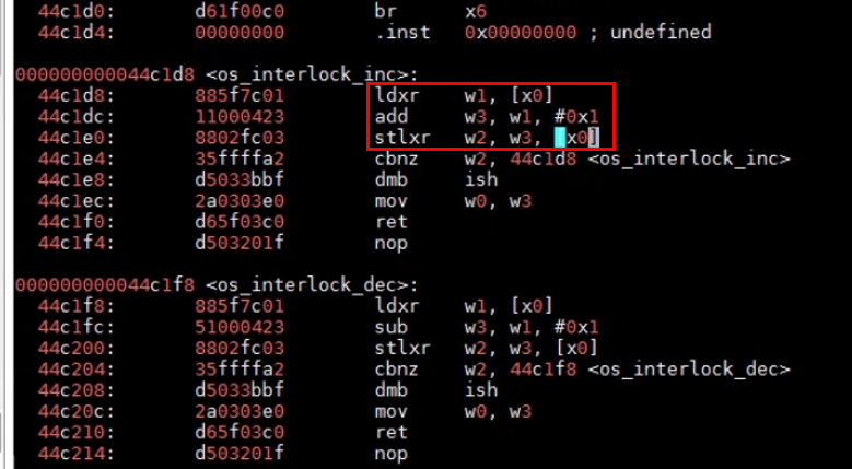 1、使用perf top命令观察热点函数,发现三个锁相关函数os_interlock_inc、os_interlock_dec和os_interlock_read64占比较高。