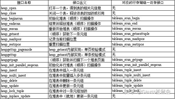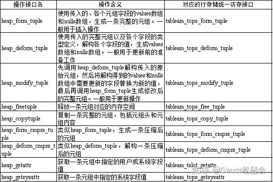 介绍了astore堆表元组结构,下面介绍常用的astore堆表元组操作接口。如表1所示。