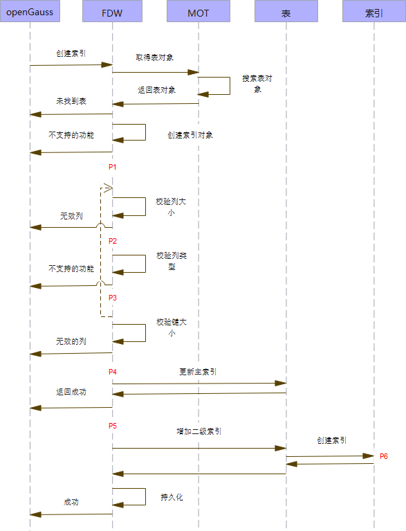 请注意,为了便于读者更好的理解正常流程和异常流程的关系,本节中的时序图均将正常流程和异常流程放在同一张图中,其中P1、P2……Pn为异常流程。同时,为简化时序图帮助理解流程,异常流程仅在异常发生的位置进行标识,未完整绘制异常流程的时序。