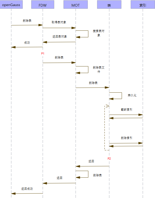 如图12所示,用户删除内存表时,openGauss通过FDW适配器将请求转发给MOT存储引擎。