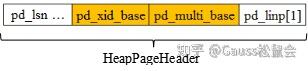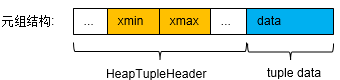 元组结构如图8所示,页面头结构如图9所示,那么对于每一条元组真正的xmin、xmax计算公式即为:元组头中xmin/xmax + 页面xid_base。