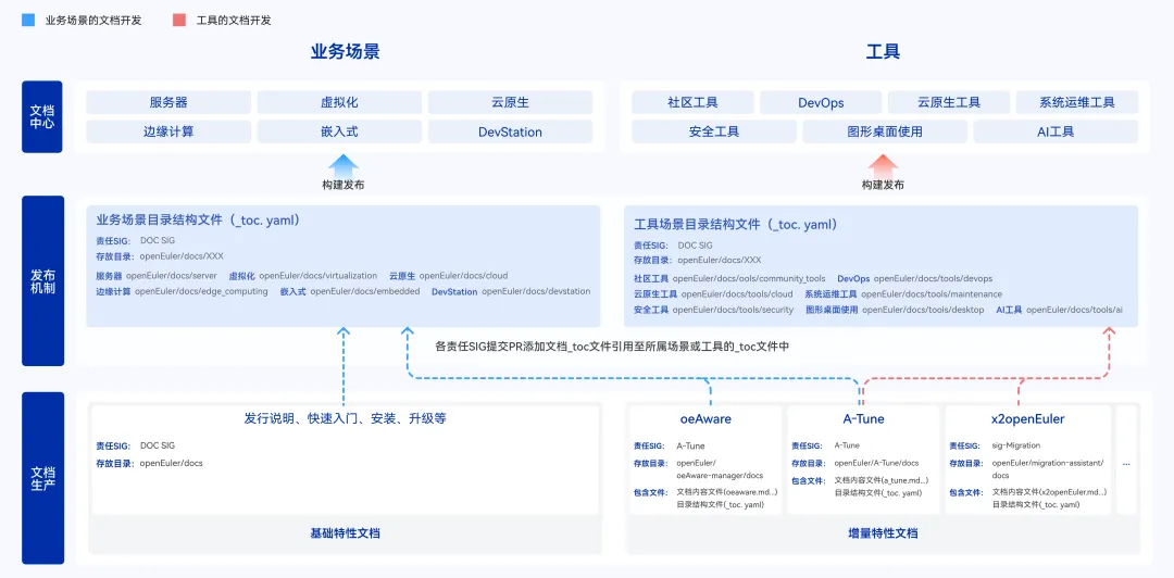 此外,我们今年优化了开源文档的生产、发布机制,文档生产下沉到各 SIG 组,各 SIG 组协同分工。此机制已在 openEuler 25.09 版本全面落地,覆盖20余个 SIG 组及全部80余本手册。