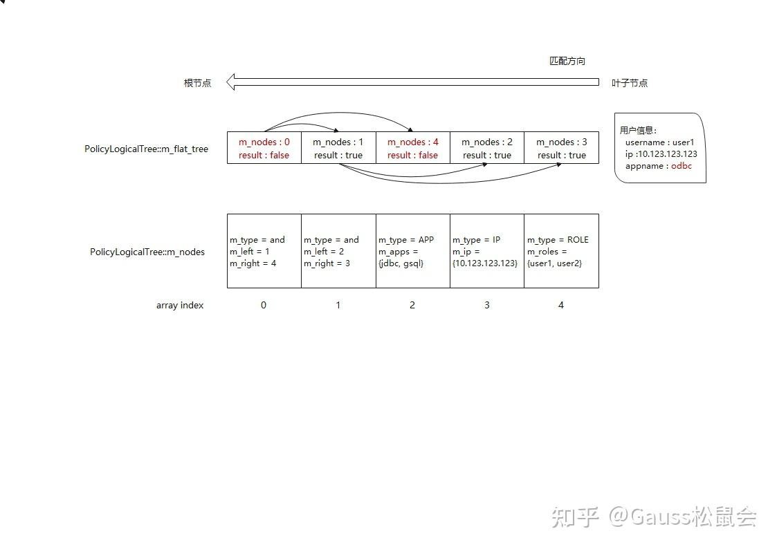 m_flat_tree数组的作用是标记逻辑树节点间关系以及标识哪些节点是逻辑树的叶子节点。当用户信息与逻辑树某节点进行匹配时,首先需要与其左右子树进行匹配,然后根据该节点的逻辑运算符来判断是否满足过滤条件要求,而左右子树的判断结果又依赖于它们的子树的结果,因此这种递归判断方法首先将会是取叶子节点进行用户信息匹配。
