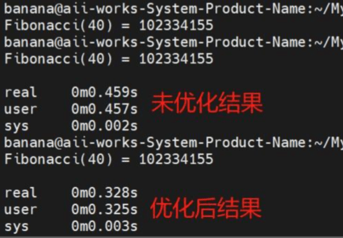 gcc -fprofile-use -o fibonacci_opt fibonacci.c(4)比较运行时间