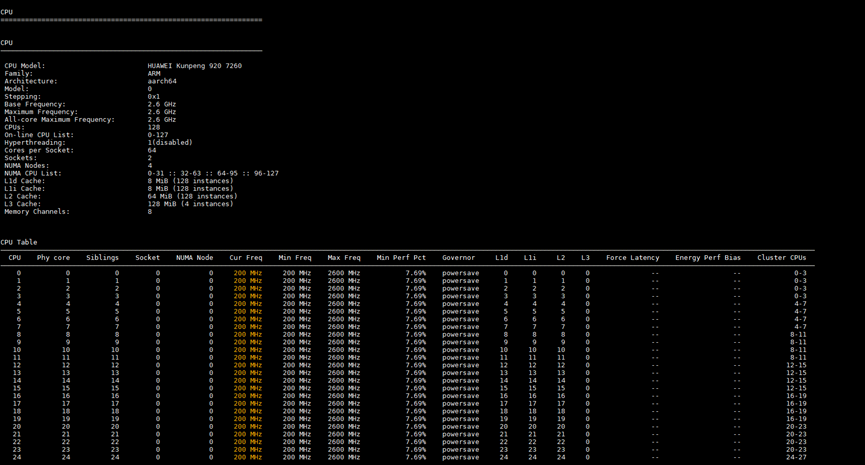 Kspect是一款轻量准确的鲲鹏健康检测工具,可快速收集服务器硬件的各类信息,包括CPU、内存、网络、存储、PCIe、虚拟机、传感器、软件和模块依赖等;并给出一定的调优建议。