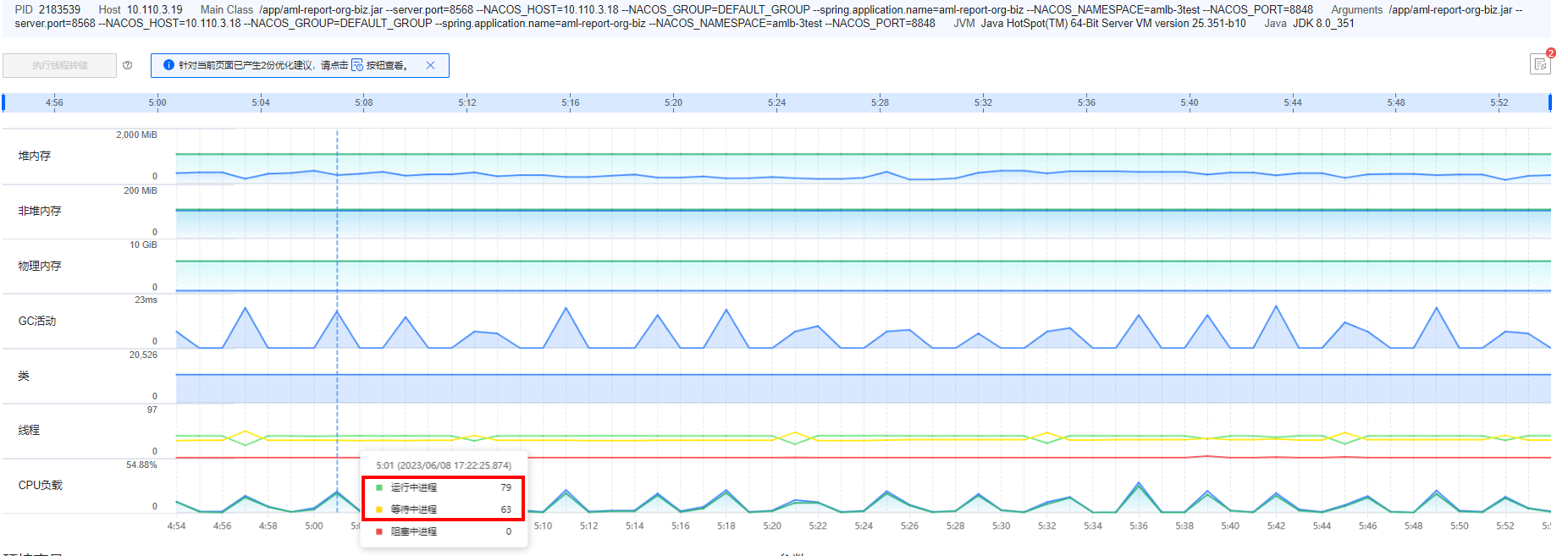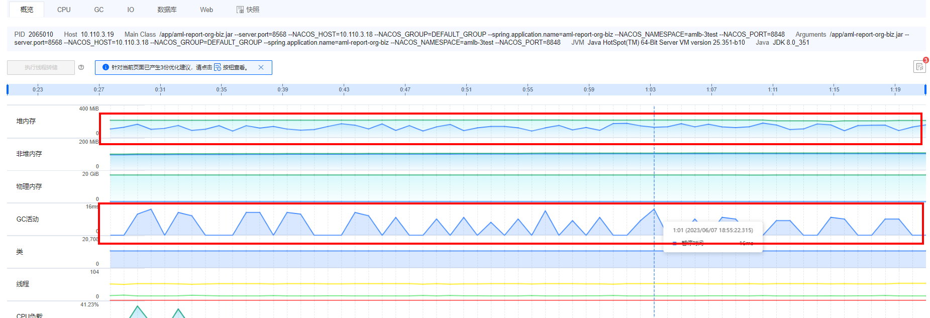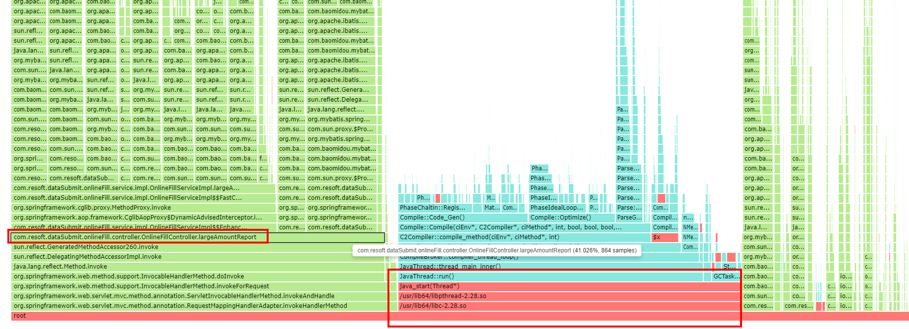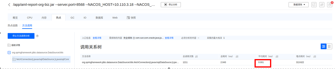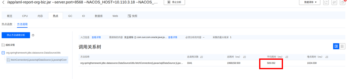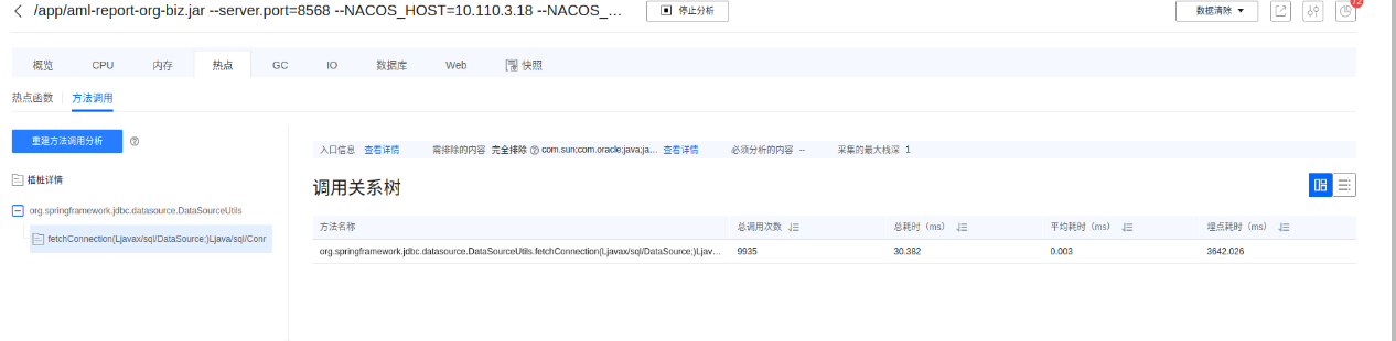 接下来可通过java调优工具分析下对应程序的线程状态、GC执行情况,对 largeAmountReport 进行插桩,具体分析其调用链的耗时。
