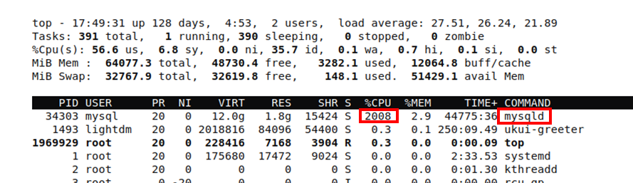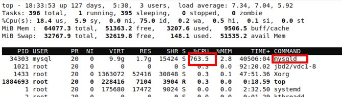 mysql进程 cpu使用率 763% 升高到 2000%,压力明显增加