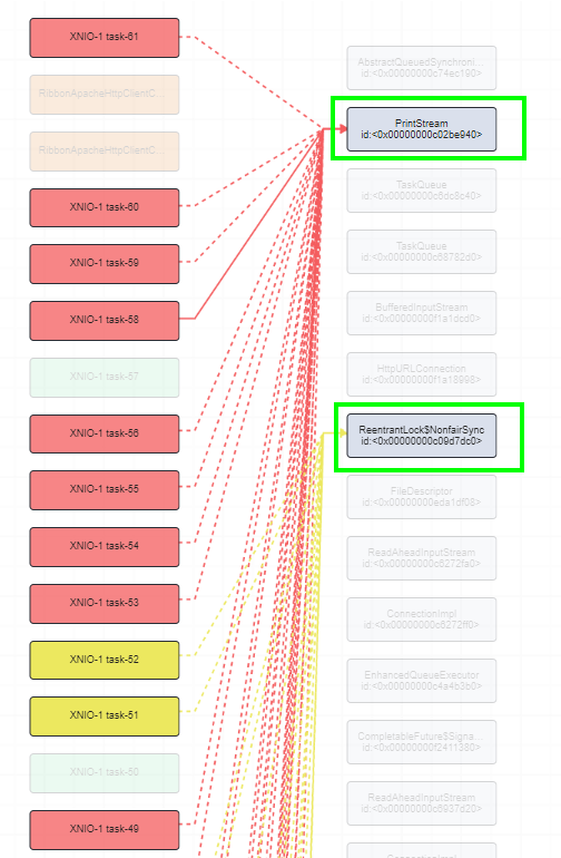 通过锁图和统计分析,60个业务线程中有42个线程会因为竞争同一把锁而处于等待状态。