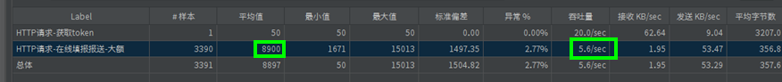 50并发是上报接口tps最优的并发数, tps 为 5.6/sec,均耗时为 8.9s
