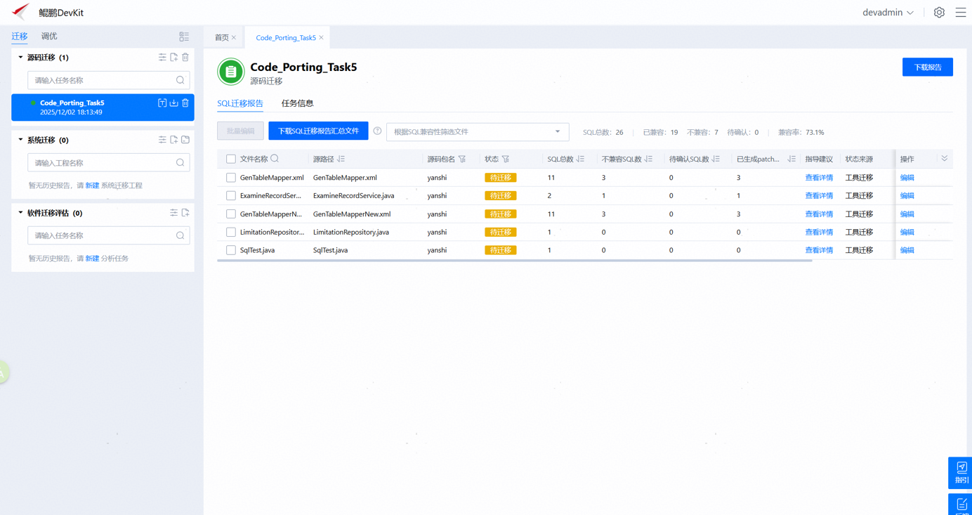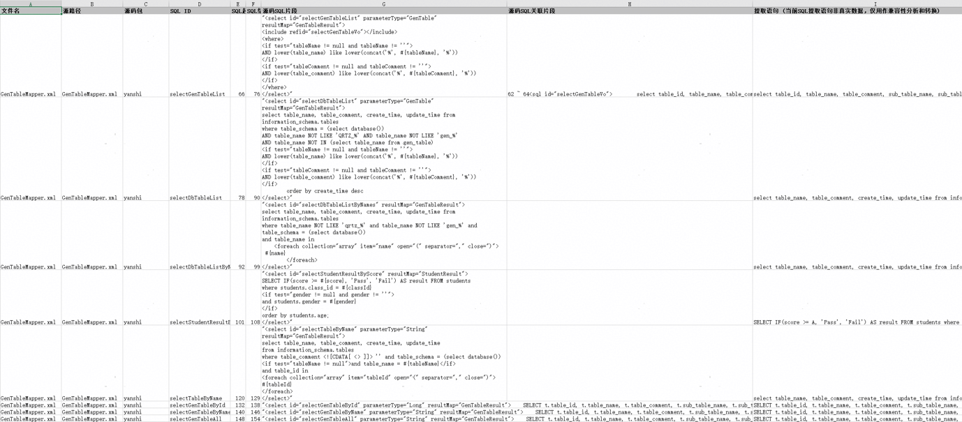 SQL迁移汇总报告压缩包中,有Excel文件记录SQL扫描结果,如果生成patch,还会有patch文件,只需对被扫描项目源码应用patch文件,就能快速完成SQL修改。