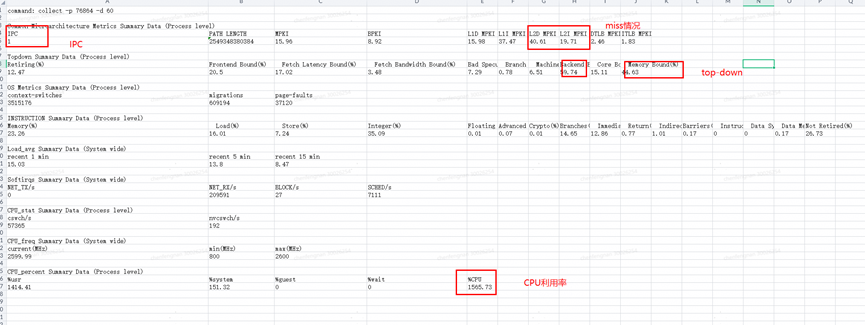 - 应用的CPU占用率较高,但是IPC只有1,当前机器为8路机器,属于偏低情况;
