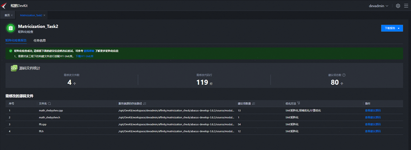 创建矩阵化检查任务,待扫描文件选择2.3.1节中包含fftw接口相关的文件,扫描结果如下: