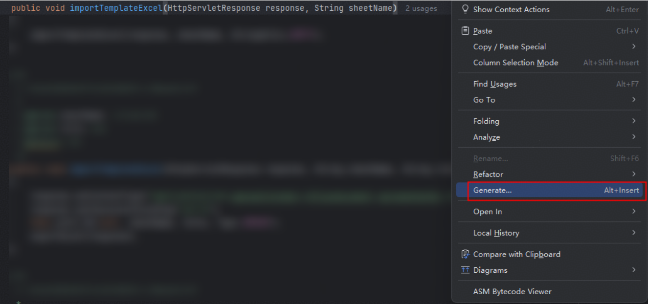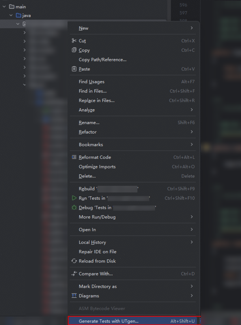 支持单个方法生成单测,对方法生成UT需要右击菜单两下,Generate->UTgen,如下: