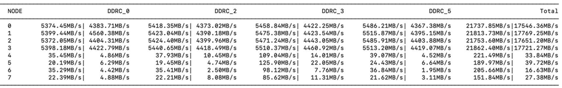 不存在跨CHIP/DIE访存,但是没有充分利用各NUMA Node上的CPU和DDRC带宽。