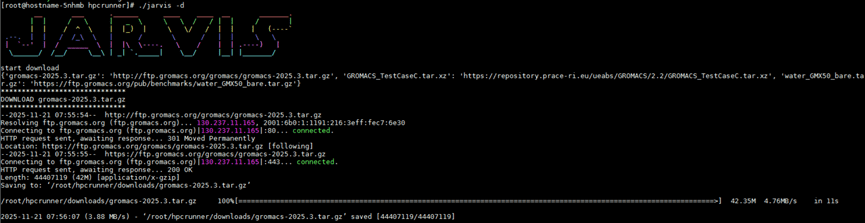 执行./jarvis -d 一键下载Gromacs 2025.3分支软件及算例文件