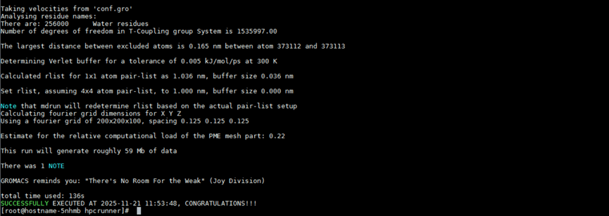 执行./jarvis -r 运行Gromacs软件及算例