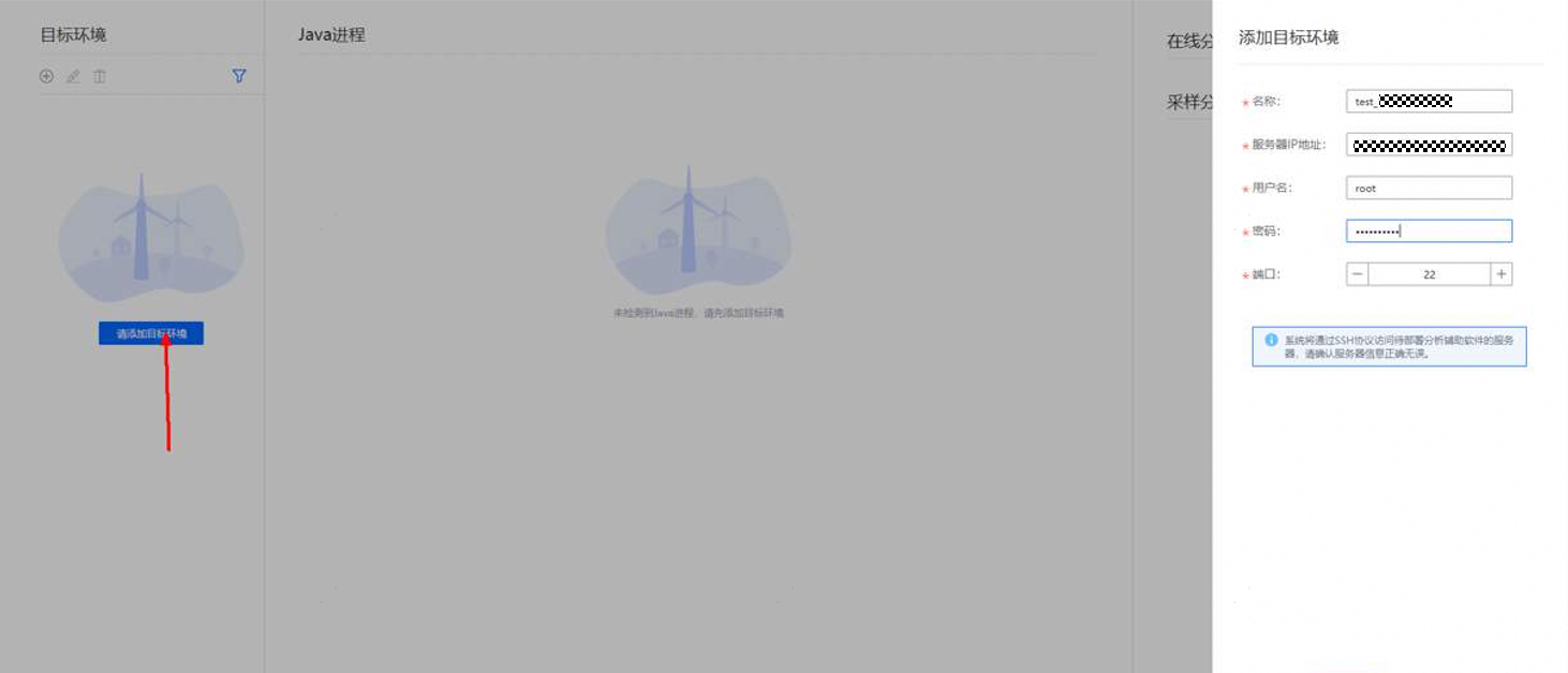 步骤2:添加目标环境(待分析的Java进程所在的服务器)