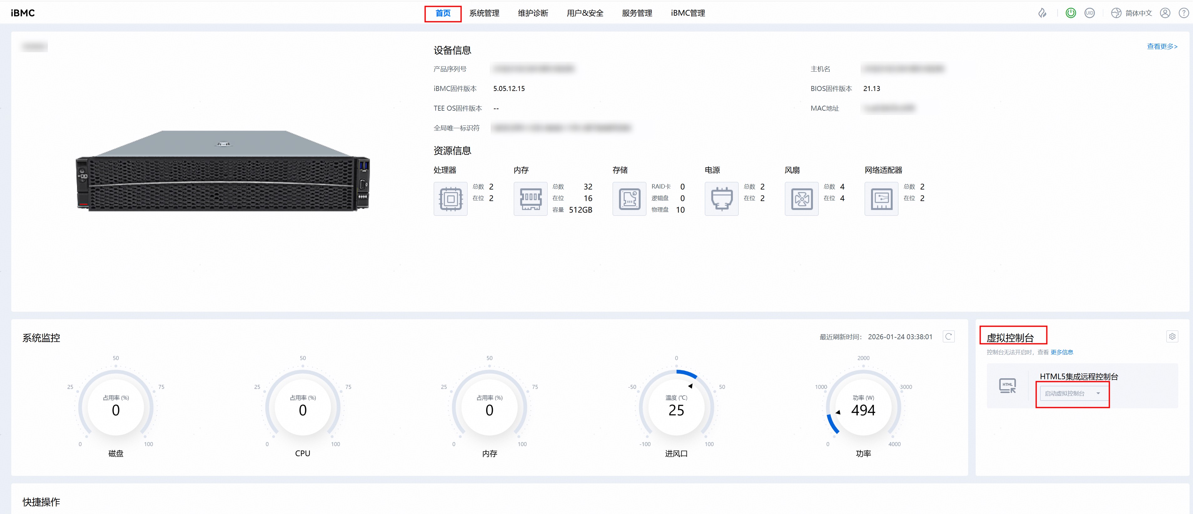 步骤1 进入iBMC首页>虚拟控制台>启动虚拟控制台