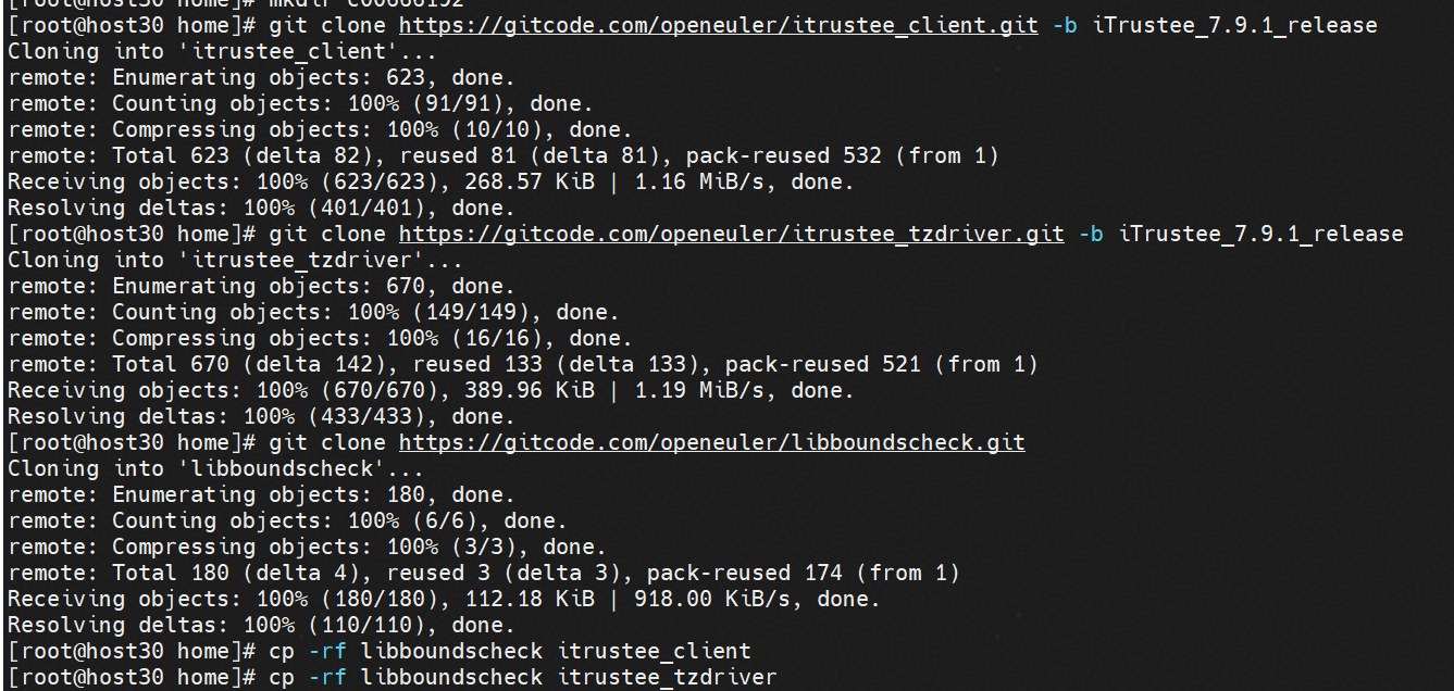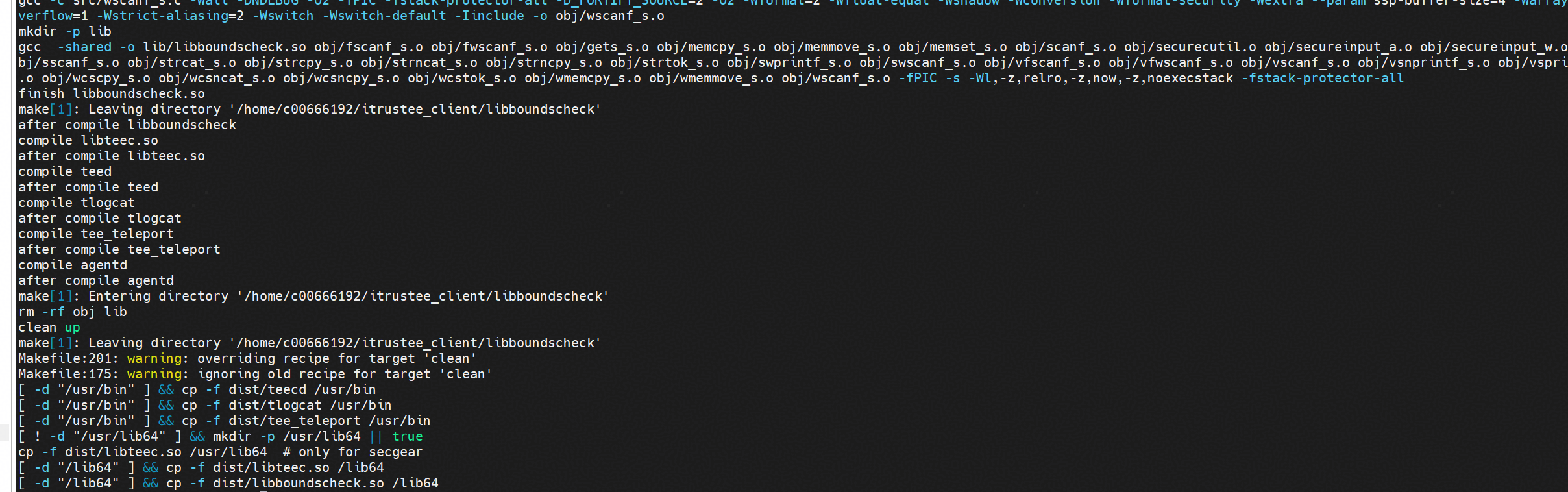 git clone https://gitcode.com/openeuler/libboundscheck.git步骤4 将libboundscheck源码分别复制到“itrustee_client/”目录和“itrustee_tzdriver/”目录下,用于itrustee_tzdriver,itrustee_client中的makefile编译时候的调用。