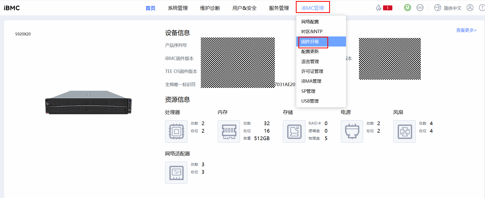 步骤2 登录iBMC网页,iBMC管理>许可证信息。