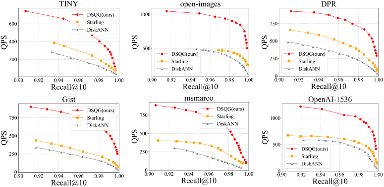 (1)性能提升:在开源Gist等数据集上进行实测,相较于DiskANN、Starling等算法,检索性能QPS提升2-5x。