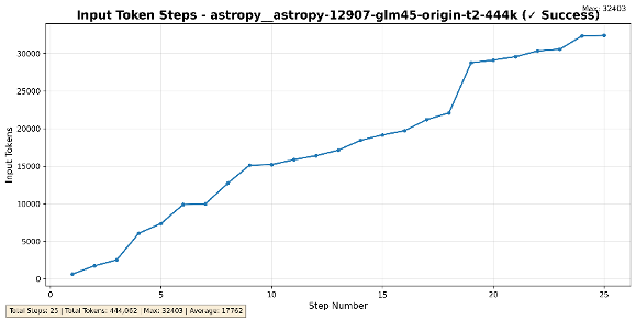 基于GLM-4.5-Air跑SWE Benchmark,从上图可以看出,单次任务调用上下文减少了一半左右, Benchmark中280个Case平均输入token从1653k 降至 968k,平均轮次从60步增至71步,正确率持平,有效降低了成本。