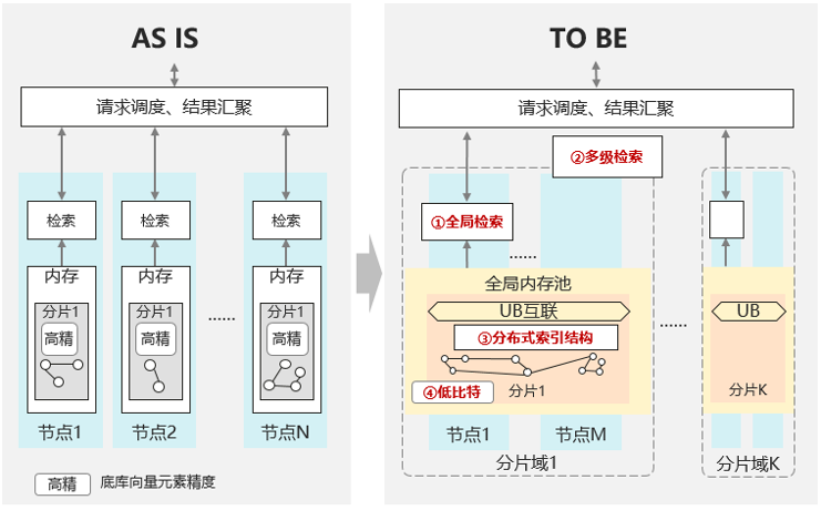 基于UB内存池的全局向量检索方案对比传统分片检索方案有如下优势:
