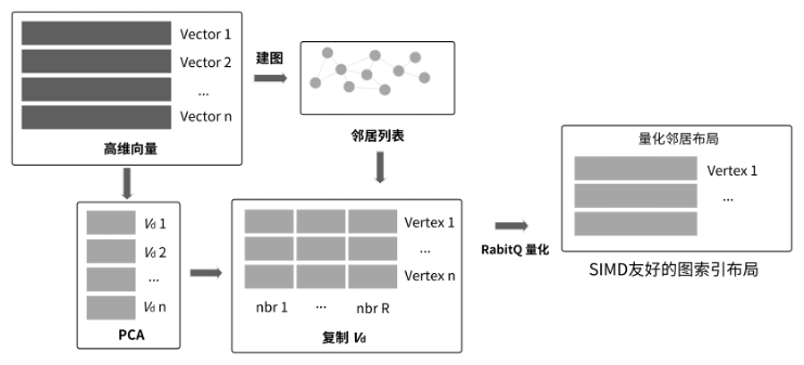 (2)SIMD友好的紧凑化索引结构:提出一种SIMD友好的紧凑化索引结构,直接整合量化编码与图结构信息,从而提升数据访问效率和计算性能,并通过全数据下盘降低内存开销。