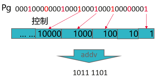 - 对于长度为8的元素,P寄存器中的格式与Bitmask相同,使用内嵌汇编直接移动数据。
