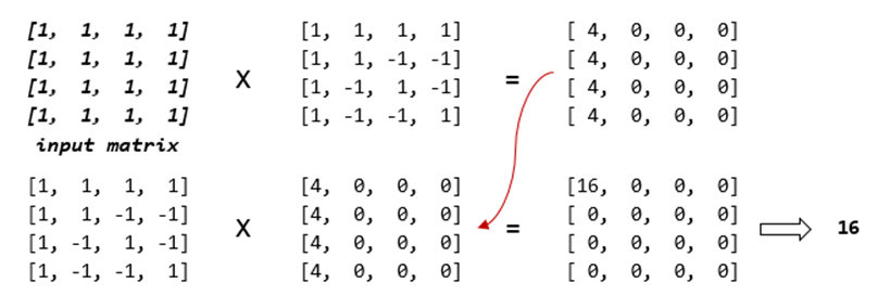 - 针对4x4中间结果矩阵的每一列做hadamard变换,得到变换结果