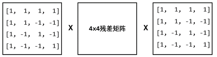 - 针对4x4残差矩阵的每一行做hadamard变换,得到中间结果矩阵