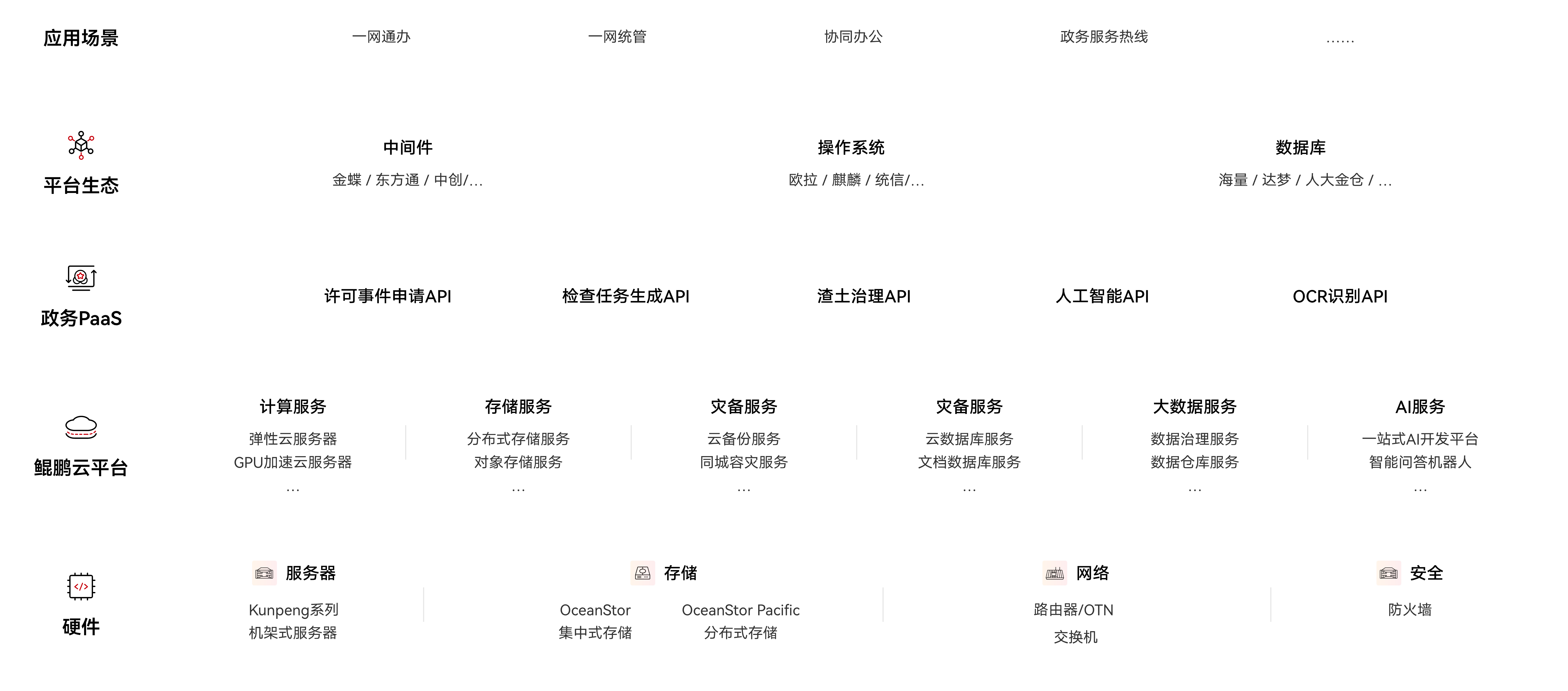 鲲鹏通过高性能计算和软硬件协同优化,为政府行业提供政务云、数据要素、政务服务和政务办公等多场景高可靠算力和高效数据处理能力的解决方案。