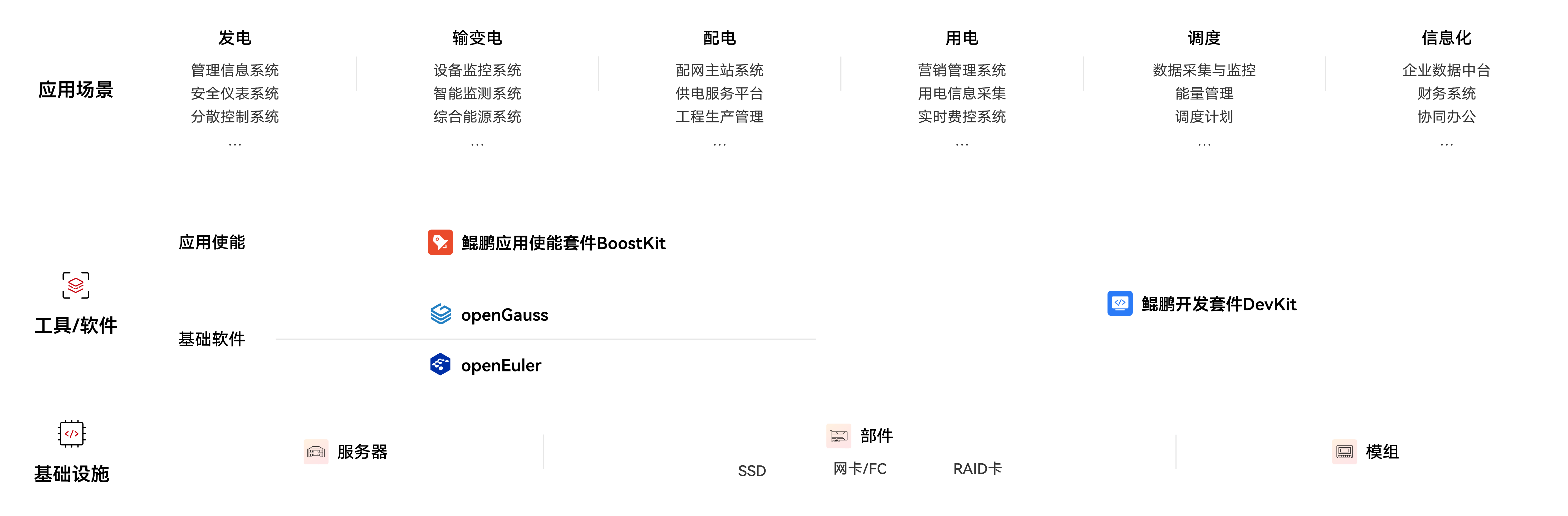 电力业务信息系统:覆盖信息基础平台、业务应用及保障体系,为电力生产自动化与企业管理系统提供信息传输、业务集成支撑,鲲鹏算力底座能为电力信息集成分析提供坚实的计算支撑。